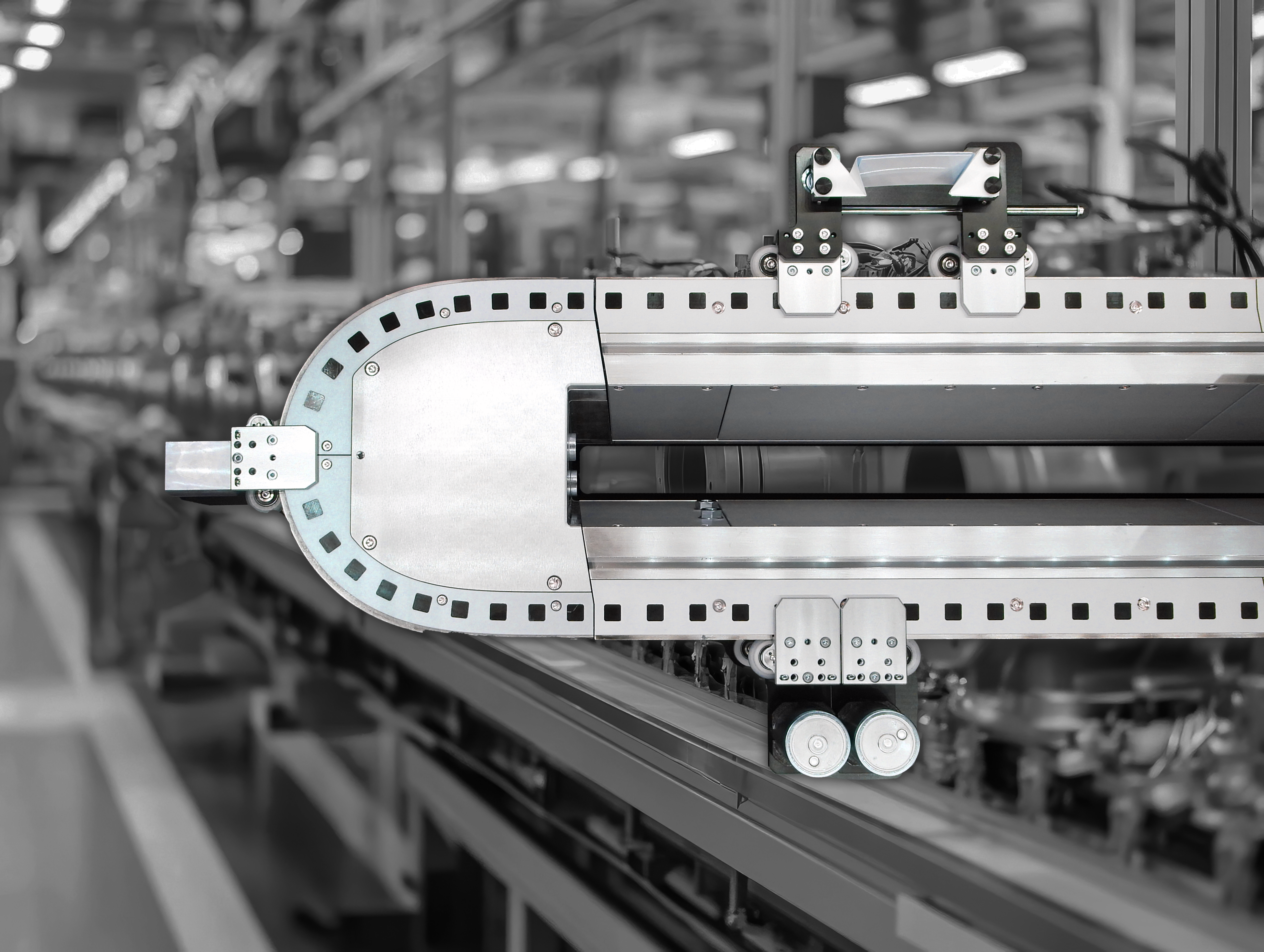 Individually controlled shuttles allow you to control the exact position of each shuttle. Stop positioning can be configured in the TrakMaster™ software anywhere, even on the curves. This will enable you to create highly flexible process flows to increase your throughput without an increased footprint.