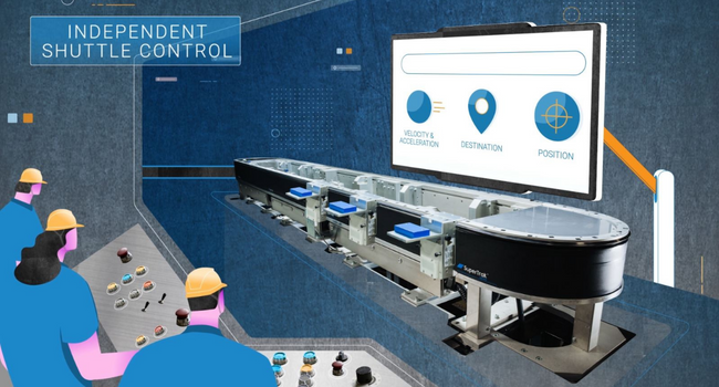 The independent shuttle control of SuperTrak VERTICAL10™, combined with up to 40m/s² acceleration and +/-0.01mm repeatability, allows machine builders to reduce repetitive tooling and decrease the system’s overall footprint.